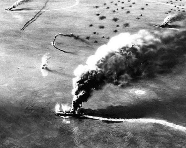 再后来就是中途岛海战,整个作战方案的具体步骤也是黑岛龟人谋划的,一开始由南云忠一带领第一航空舰队的6艘航母出发,用空中力量打击中途岛,山本五十六则率领战列舰主力在航母编队后面做掩护,紧接着第二舰队护送十五艘运输船运送一个陆军联队在中途岛登陆作为呼应,与此同时,第五舰队在第四航空战队掩护下攻击阿留申群岛的美国荷兰港基地,同时占领阿图岛和基斯卡岛。