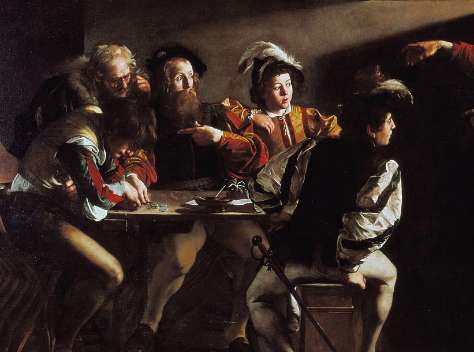 1599年,大概通过德尔·蒙特的影响,卡拉瓦乔取得装饰圣路易吉·迪·弗朗西斯教堂的肯塔瑞里礼拜堂的合同。这一委托包括两件作品,《圣马太殉难》和《圣马太蒙召》,1600年完成后立刻引起轰动。卡拉瓦乔增强的明暗对照法使得主题极富戏剧性,同时精确观察带来的写实把情感的强度提高到了一个新的水平。现在人们把这种明暗对着法的增强形式称作暗色调主义, 其兴起归功于卡拉瓦乔。卡拉瓦乔同时代的画家对此持截然不同的两种观点。一些人公开指责他有各种的感觉缺陷,特别是他不讲作画章法,坚持写生。但绝大多数 人把他当作艺术的救主来欢迎。「那时,罗马的画家被这种新颖的画风所吸引,特别是年轻画家都聚集在卡拉瓦乔身边,称赞他是绝无仅有的自然模仿者,把他的作 品视作奇迹。」