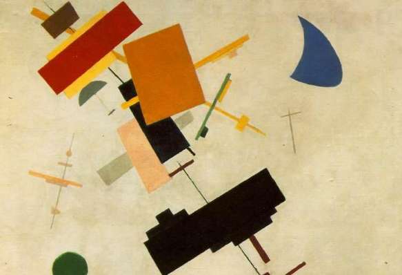 1913年,马列维奇画出了著名的《白底上的黑色方块》,这是至上主义的第一件作品,标志着至上主义的诞生。马列维奇在一张白纸上用直尺画上一个正方形,再用铅笔将之均匀涂黑。这一极其简约的几何抽象画,于1915年在彼得格勒的《0、10画展》展出,引起极大轰动。观众们在这幅画前纷纷叹息,“我们所钟爱的一切都失去了……我们面前,除了一个白底上的黑方块以外一无所有!”不过在马列维奇看来,画中所呈现的并非是一个空洞的方形。它的空无一物恰恰是它的充实之处;它孕育着丰富的意义。